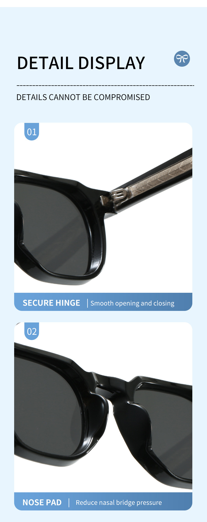 TR90 Frame: Lightweight and durable TR90 frame material for comfortable long-term wear
